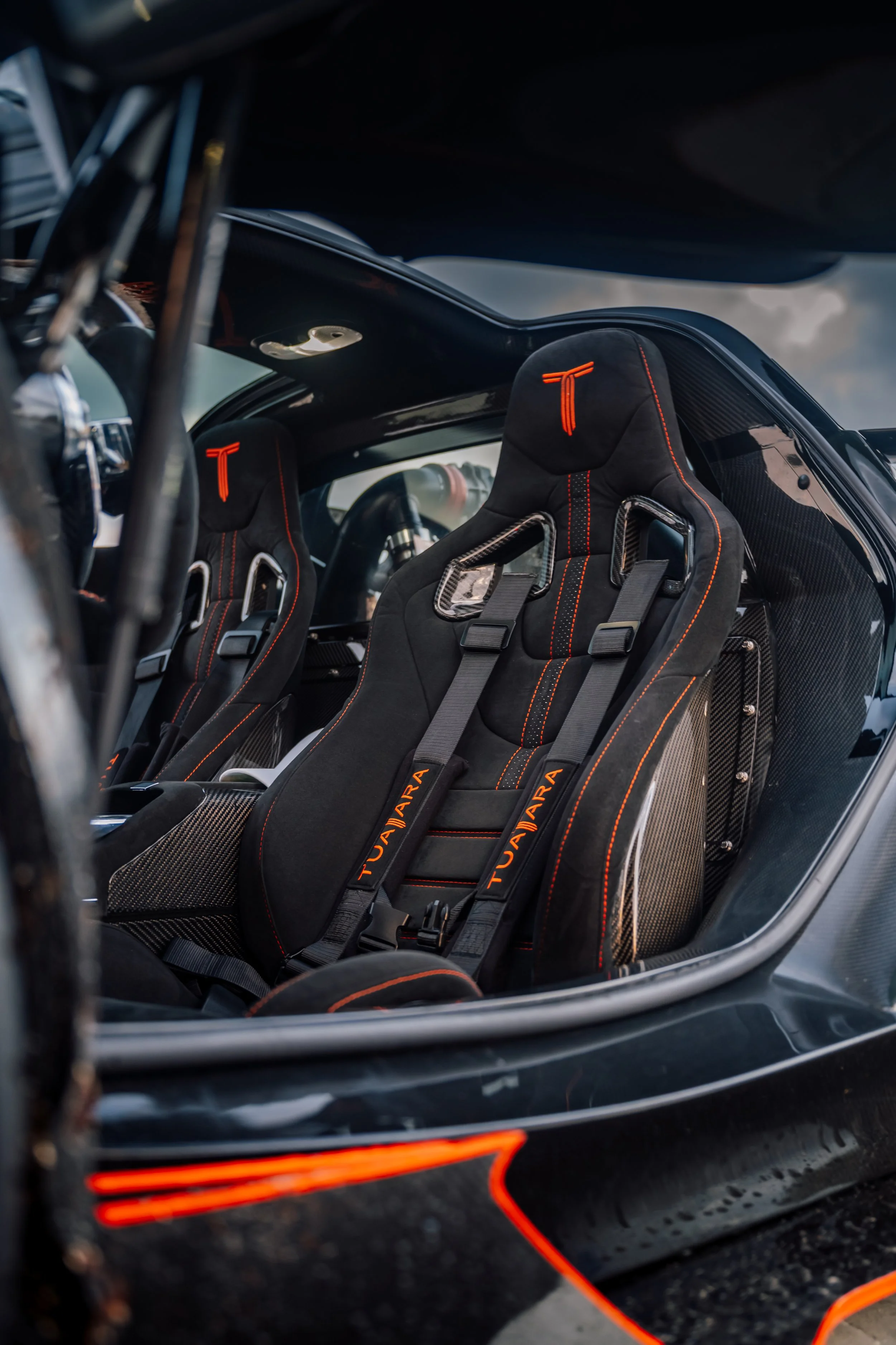 Beneath the carbon fiber skin of the Tuatara is a robust carbon fiber monocoque, engineered with safety, durability, performance, and aesthetics in mind. The monocoque brings all of the critical sub-assemblies together into an aggregated form, as well as contours to the shape of the ergonomic cockpit surrounding the driver and passenger. Composed entirely of carbon fiber, the light weight frame provides uncompromising safety thanks to its systematic crash structures and durable design. The beautiful carbon fiber composition was not left to be unnoticed, as exposed areas of the monocoque are visible, both subtly and notably across the car.